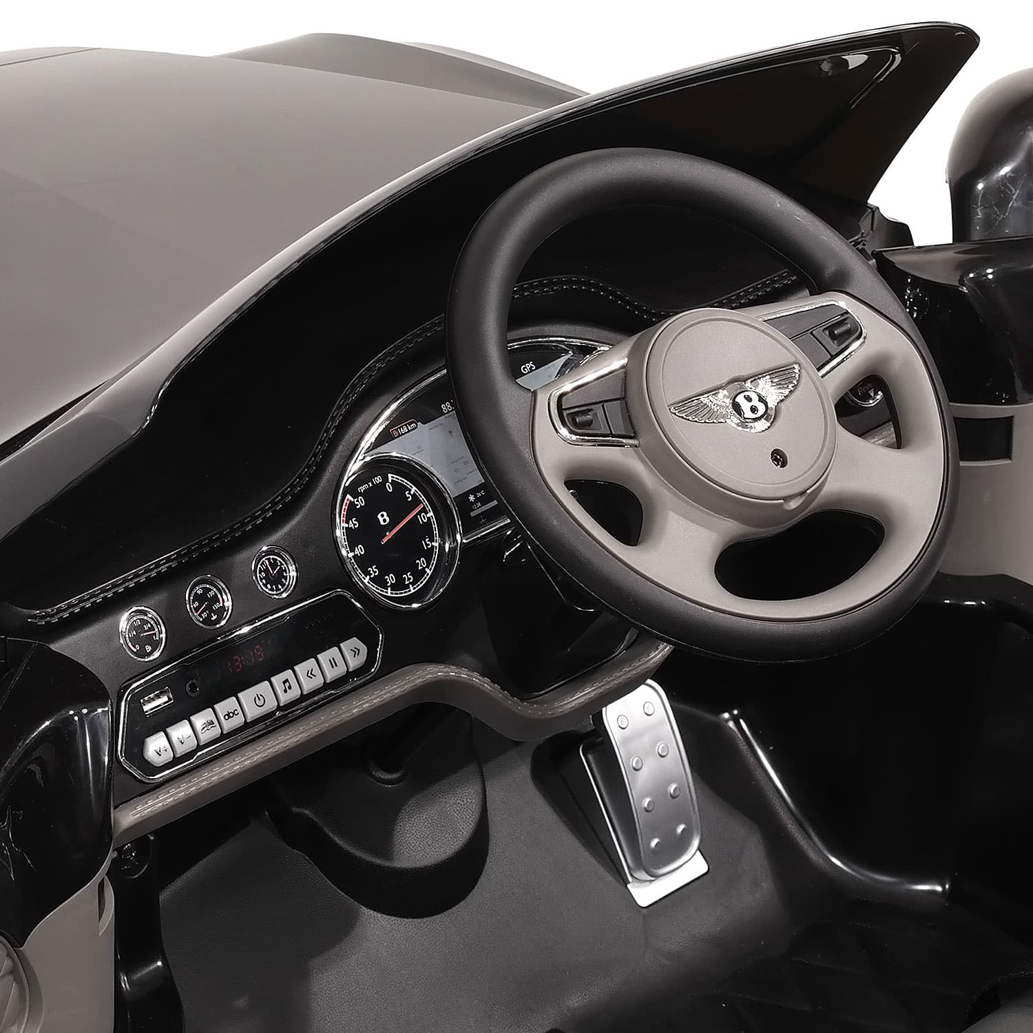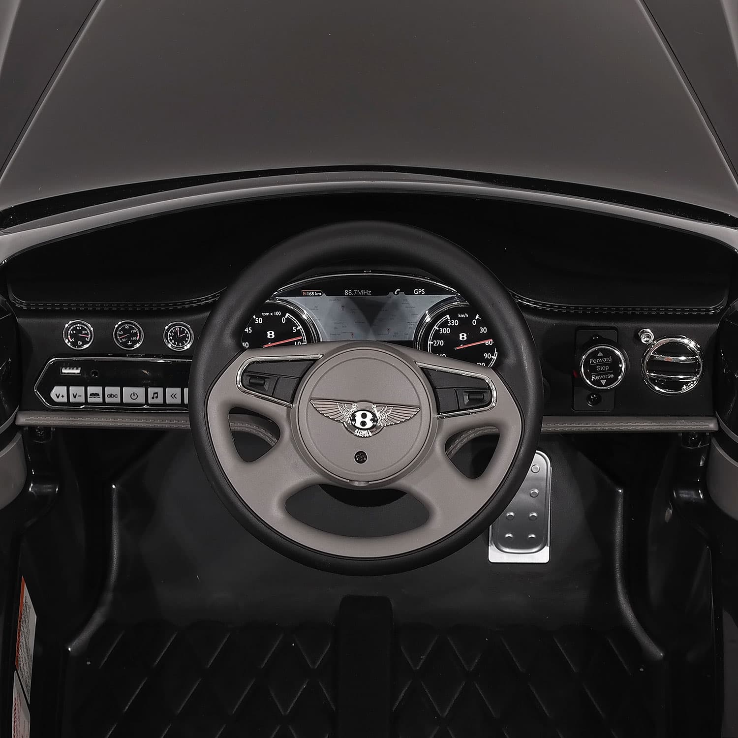 O Bentley Mulsanne elétrico 12V é perfeito para crianças de 3 a 5 anos (ou menores, sob supervisão), combinando segurança, conforto e estilo. Conta com banco em couro vegano acolchoado com cinto de segurança, rodas de EVA silenciosas, faróis e luzes de LED funcionais e MP3 player com USB/AUX para diversão musical durante o passeio.
