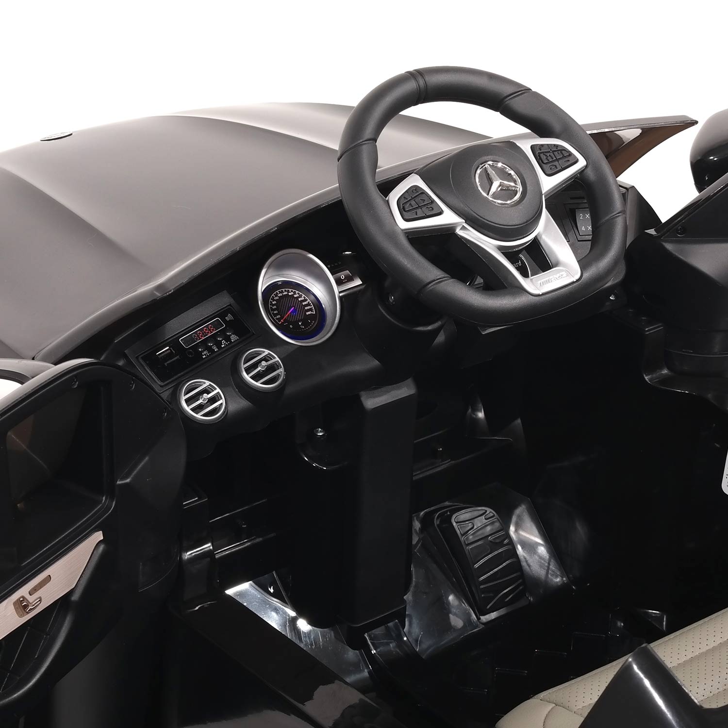 Apresente à sua criança a sofisticação de um Mercedes-Benz em miniatura! O GLC 63S AMG Preto 12V é um carro elétrico infantil que combina design autêntico, conforto premium e tecnologia segura, garantindo diversão e segurança. Com assento em couro vegano, faróis LED, sons realistas e MP3 player, oferece uma experiência completa. Pode ser conduzido pela criança ou controlado pelos pais via controle remoto parental. Indicado para crianças de 3 a 5 anos, suporta até 25 kg e oferece velocidades de 1 a 5 km/h.