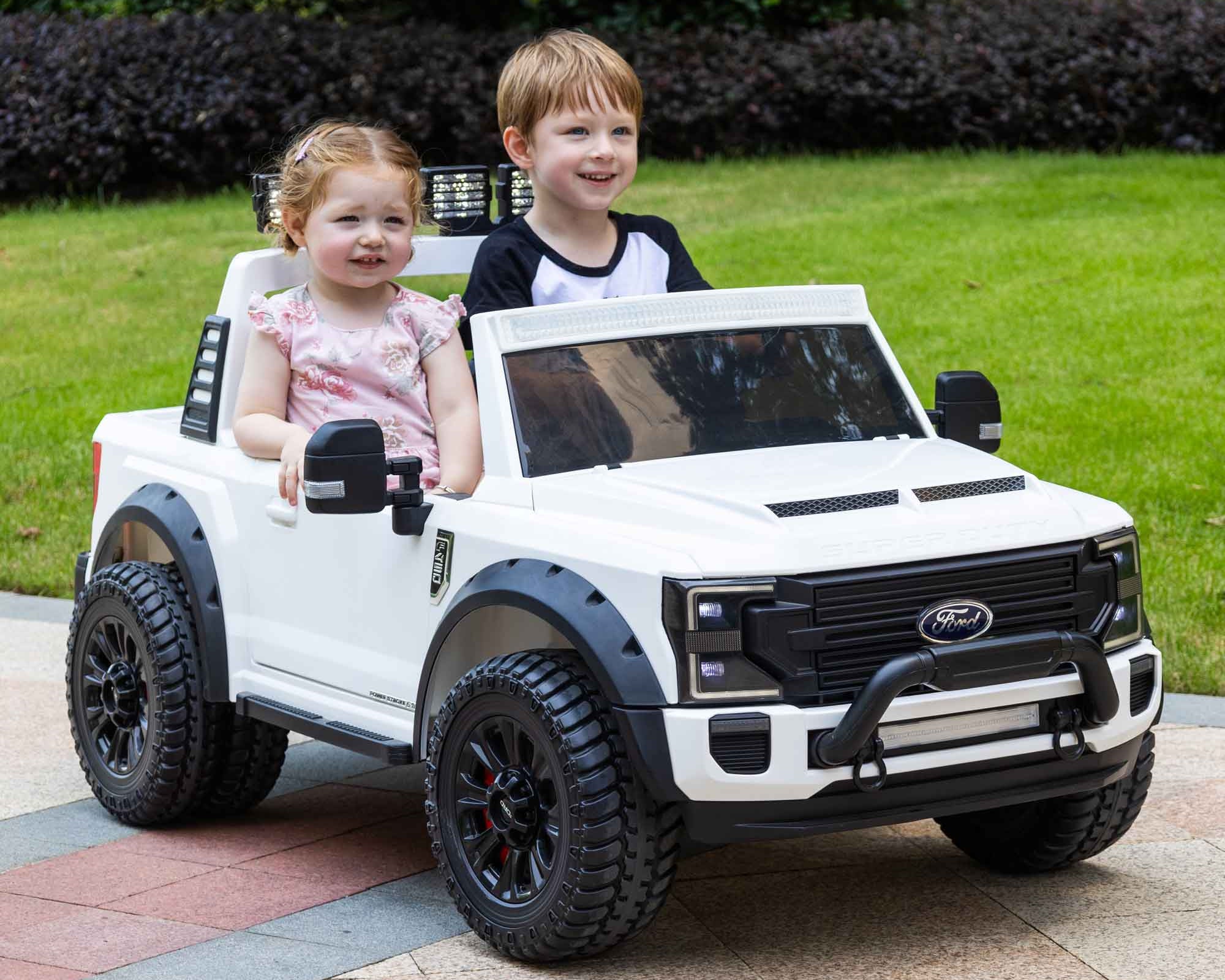 Ford F450 Custom Edition 24V Kids Ride-On Car Truck com controle remoto dos pais R/C | Branco