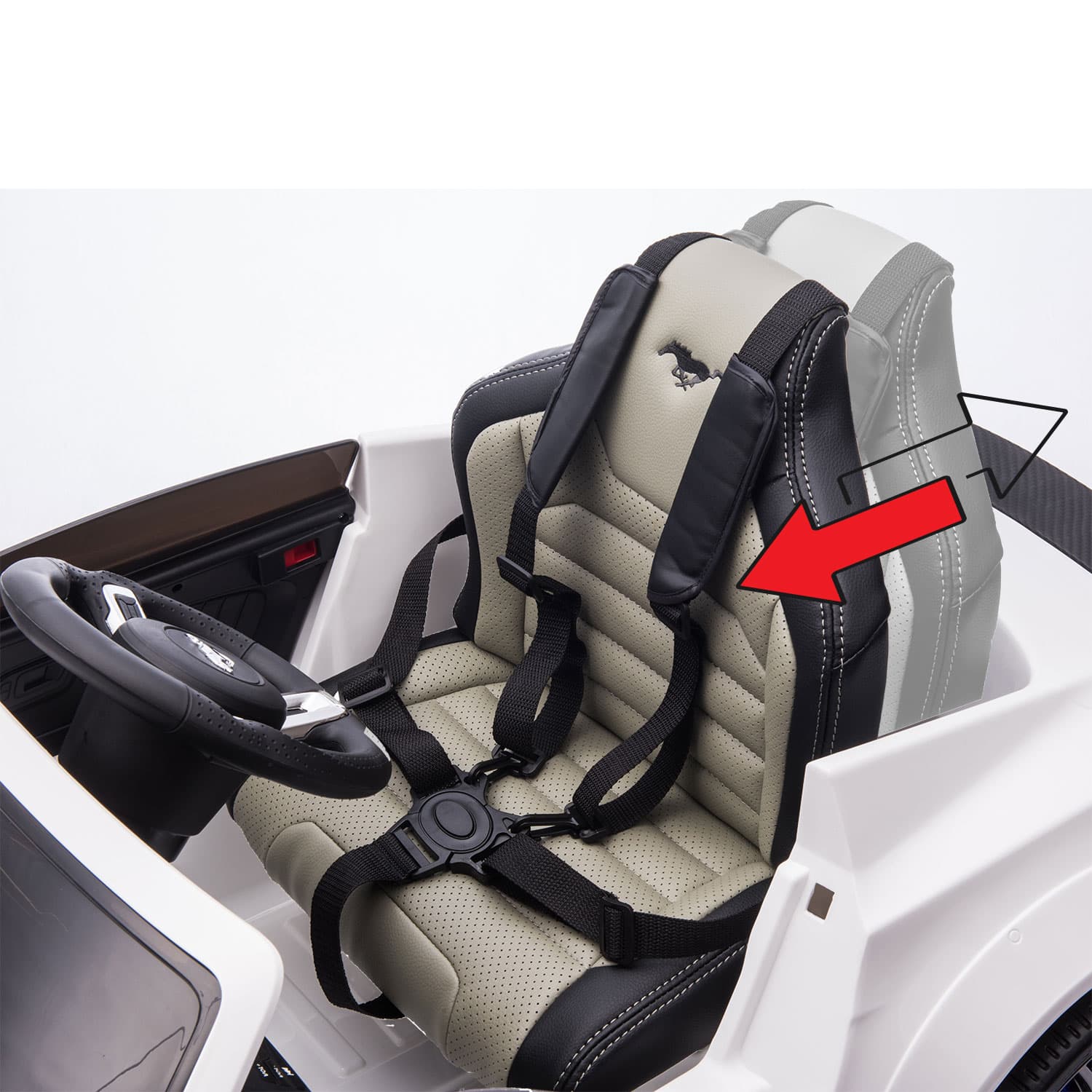 • Segurança Máxima: Soft start, freio elétrico, cinto de 5 pontos, assento ajustável em couro vegano e amortecedores de mola para passeios confortáveis.