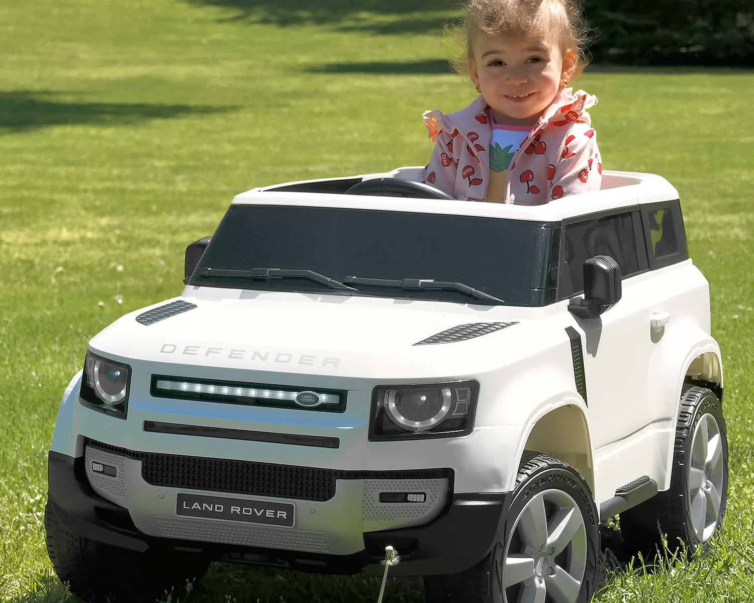 Carro infantil Land Rover Defender 12V com controle remoto dos pais R/C | Branco