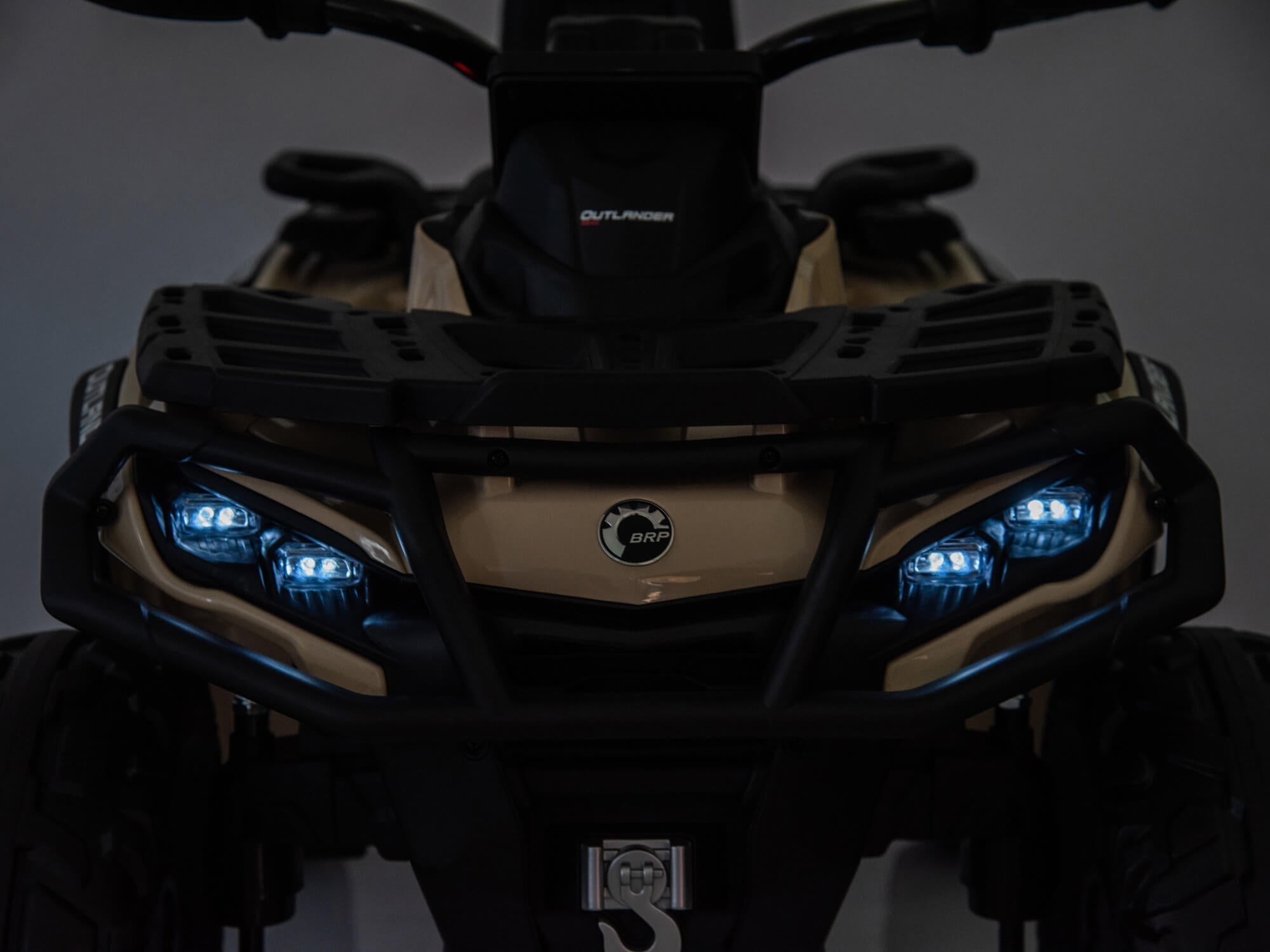 Leve seu pequeno piloto para aventuras emocionantes com o Can-Am Outlander Desert Tan 24V! Este quad infantil 4WD de dois lugares combina potência, conforto e tecnologia segura, garantindo diversão para crianças de 3 a 8 anos. Com assento em couro vegano para dois, faróis LED, suspensão traseira e media player integrado, proporciona uma experiência completa. Disponível nas versões STANDARD (rodas plásticas) e PREMIUM (rodas EVA), para passeios mais suaves e aderentes. Suporta até 50 kg combinados e oferece velocidades de 3–8 km/h.