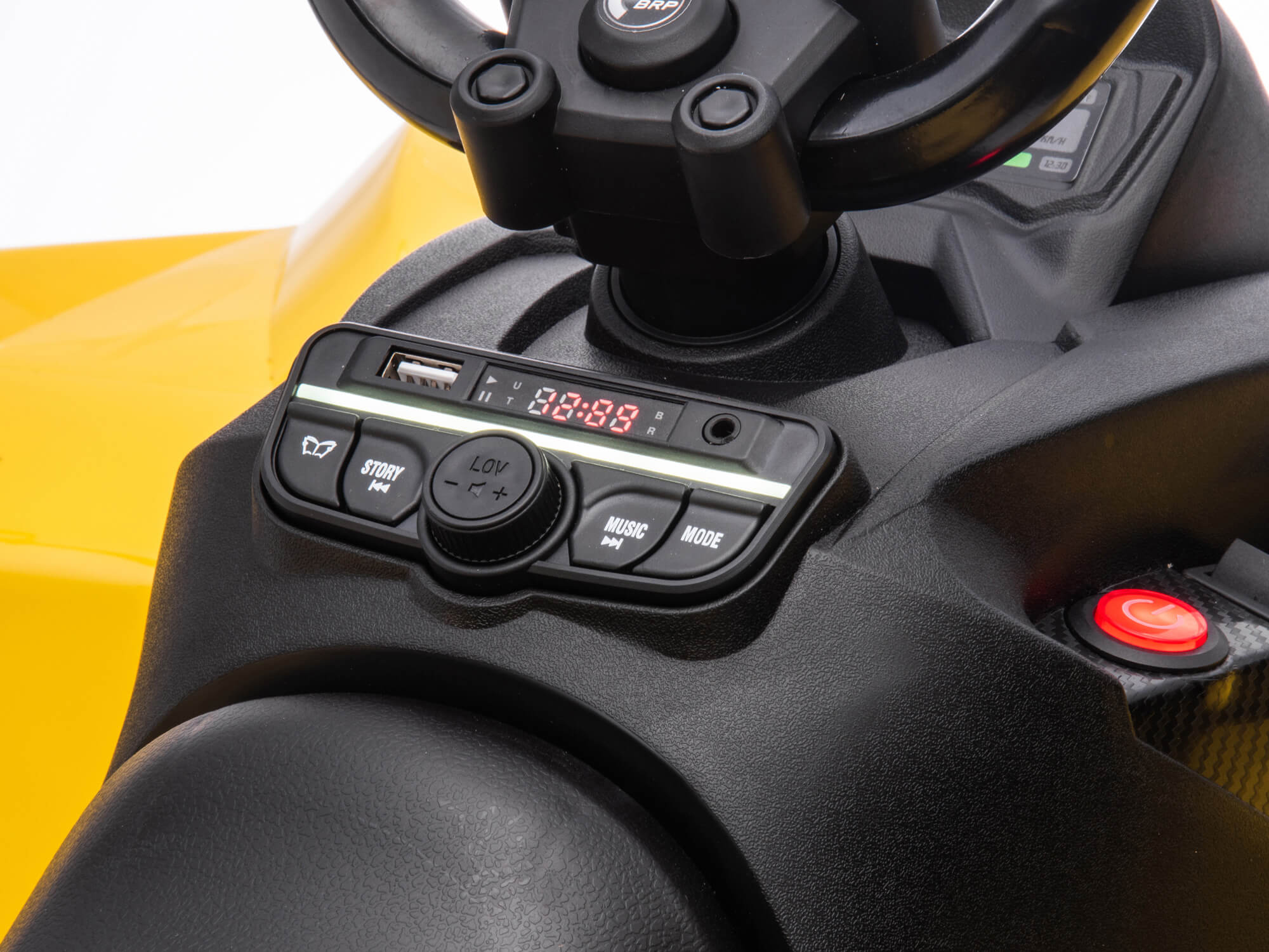 Pequenos pilotos de 3 a 6 anos vão adorar o Can-Am Renegade 24V! Com assento de couro confortável, rodas EVA resistentes e a opção de alternar entre 4WD para grama e 2WD para superfícies planas. Inclui alto-falante integrado com streaming de música sem fio, FM, USB/SD e controle de volume. Montagem rápida em 45–60 minutos.